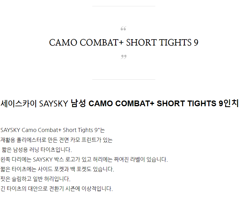 카모 컴뱃 쇼츠 타이즈 9인치 남성용