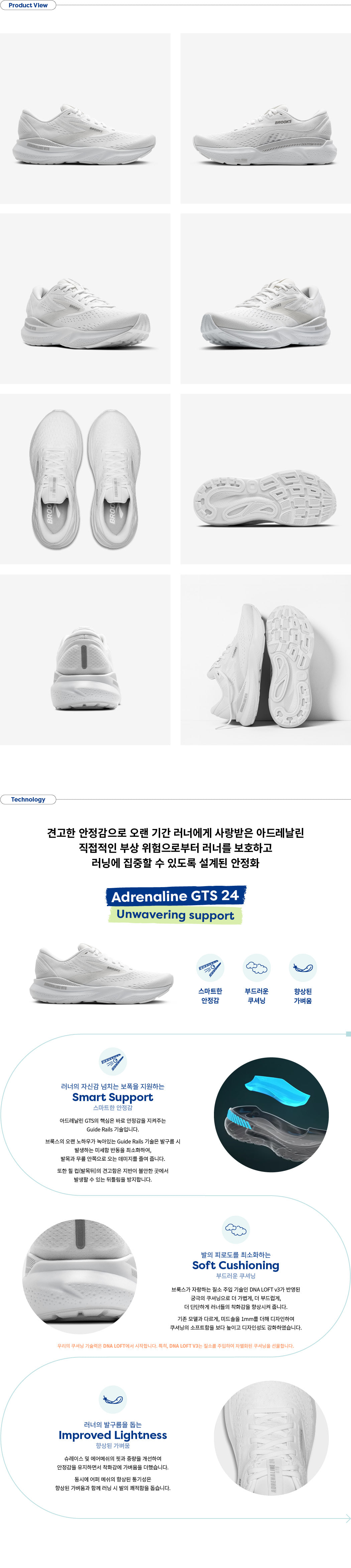 아드레날린 GTS 24 와이드 화이트 러닝화 여성용 (120426 1D 148)
