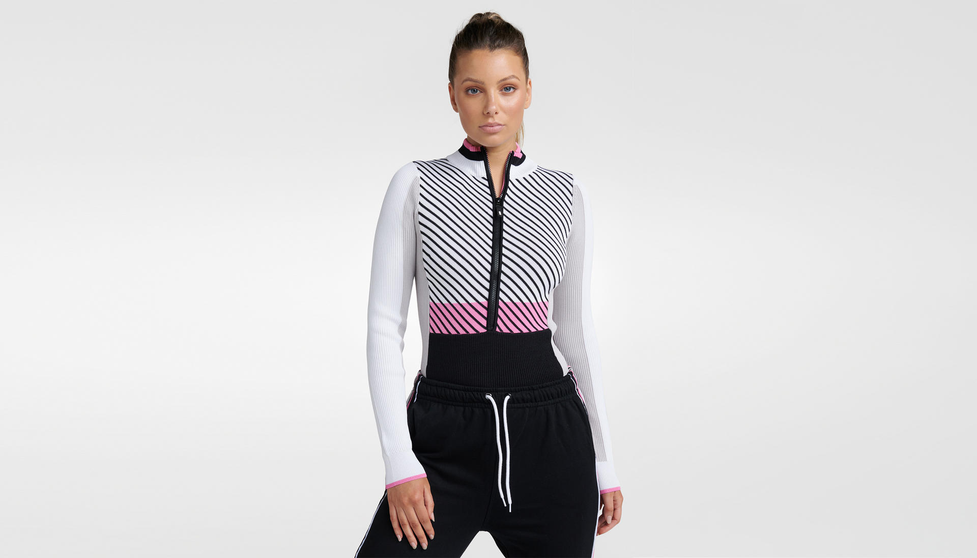 그레이,블랙,화이트,핑크 믹스패널 디자인으로 세련된 컬러감을 보여줍니다.
