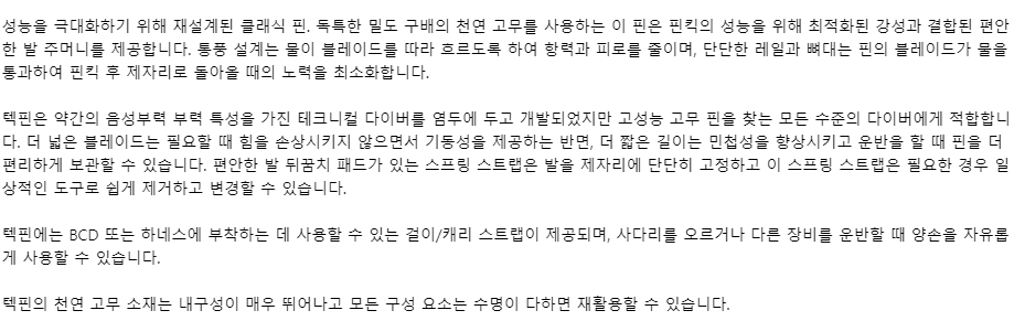 텍 다이빙 핀 블랙