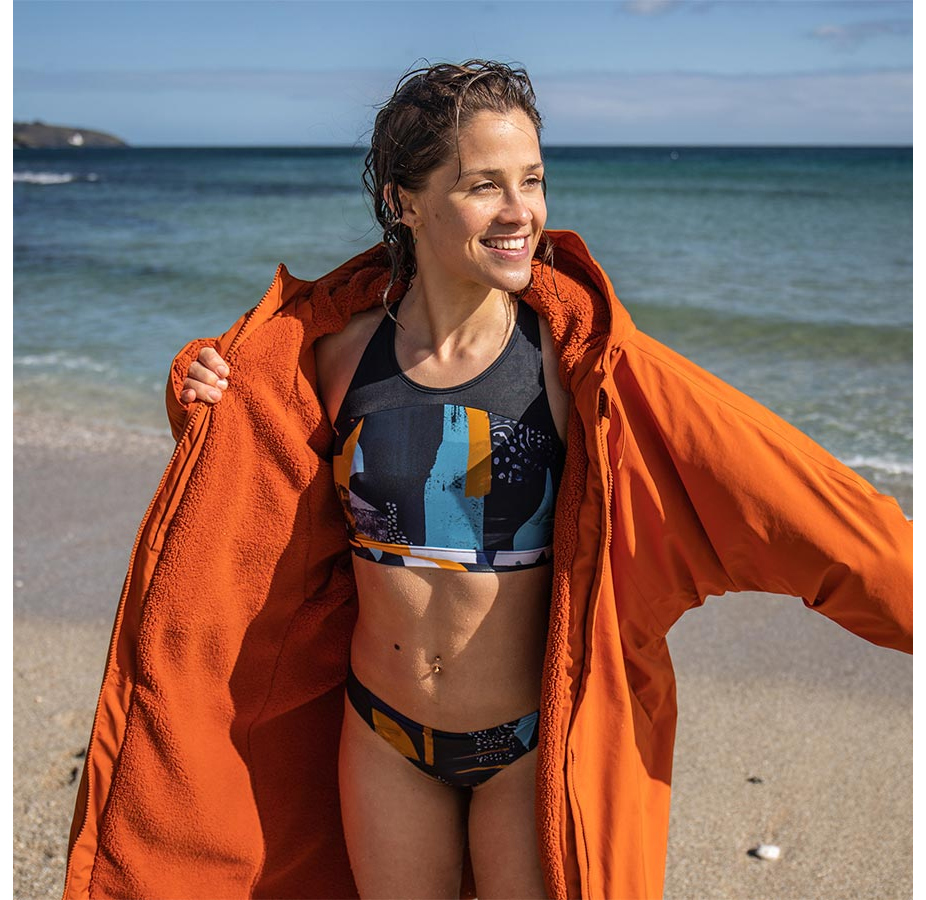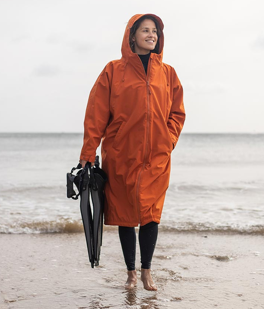 재활용 소재로 제작된 이 타이달 로브는 내부의 따뜻함과 외부의 요소를 차단하도록 제작되었습니다.