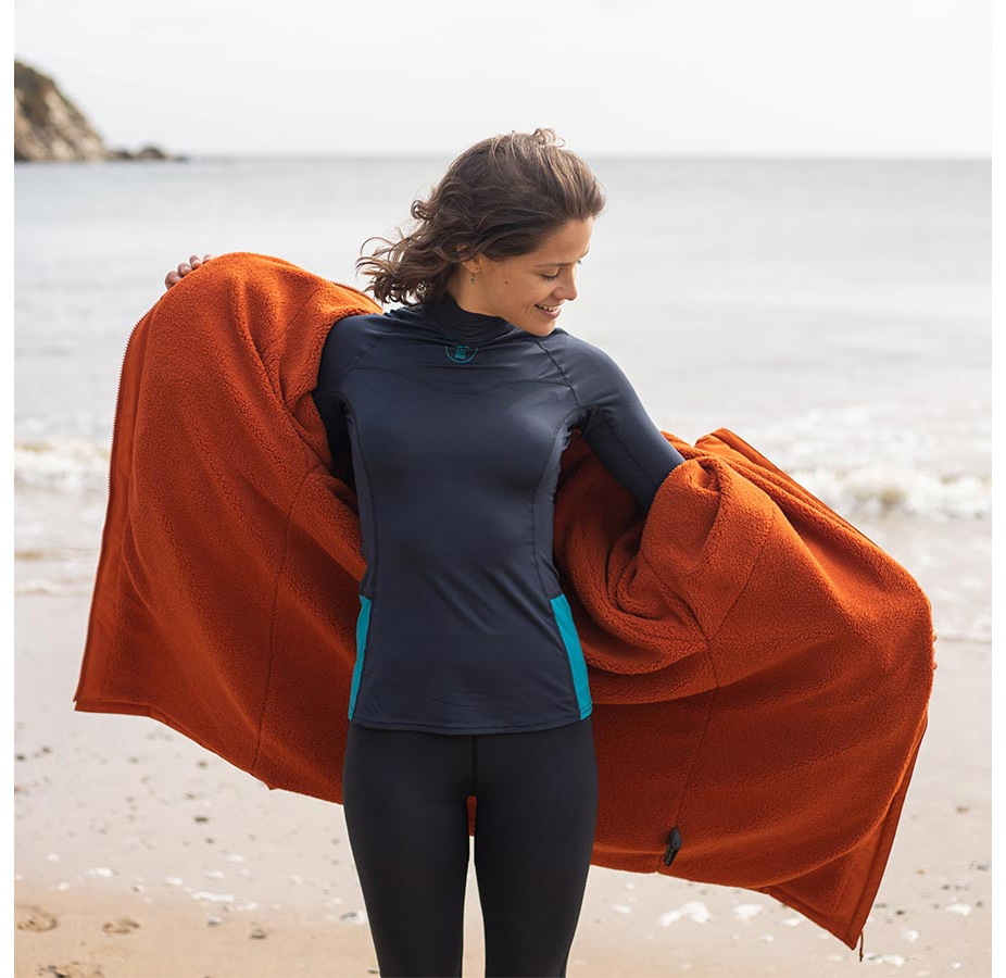 매우 부드러운 플리스 안감 로브는 테이프로 된 솔기와 손난로 주머니가 있어 물속에서 보낸 시간을 편안하고 건조하게 유지하는 데 적합합니다.