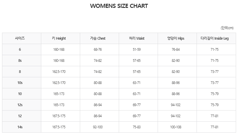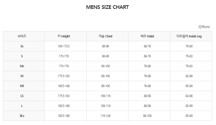 사이즈 차트를 참조해주세요.