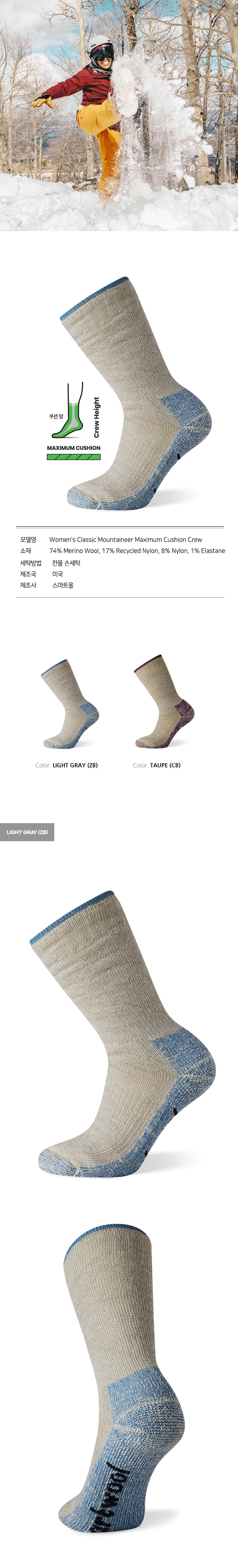 클래식 마운티니어 맥시멈 쿠션 크루 삭스 라이트그레이 여성용
