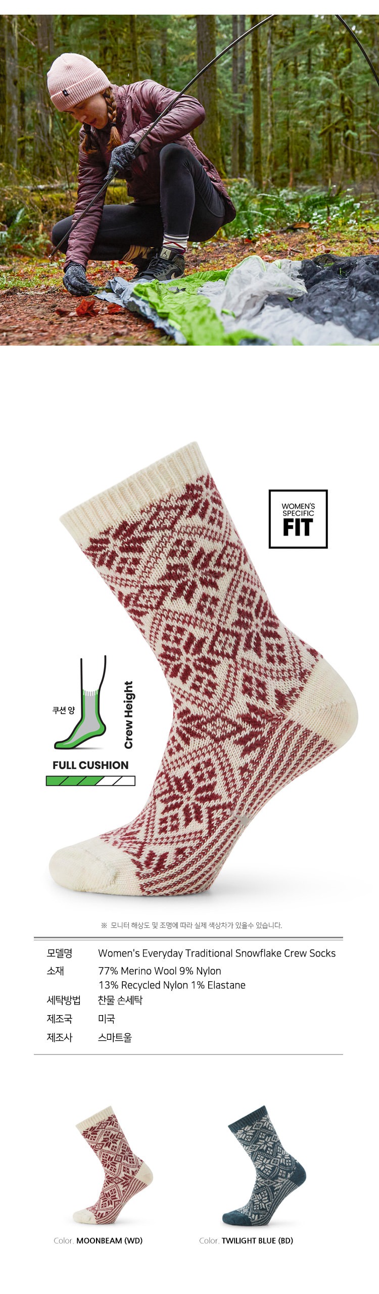 에브리데이 트레디셔널 스노우플레이크 크루 삭스 트와일라잇블루 여성용