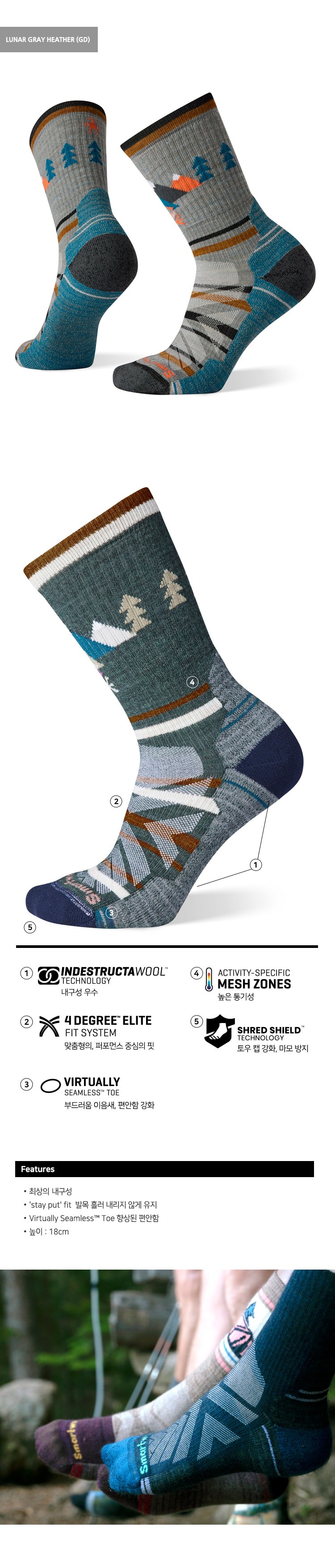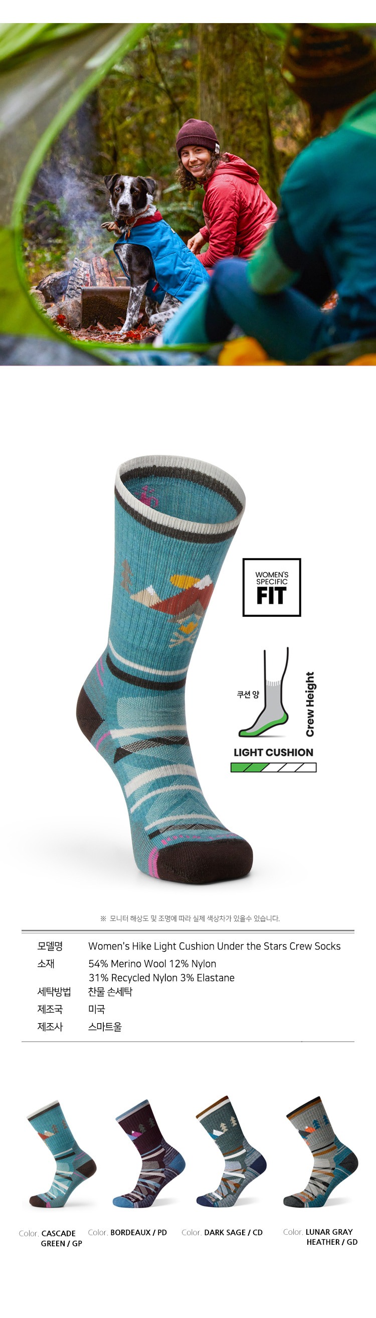 하이크 라이트 쿠션 언더 더 스타 크루 삭스 캐스케이드그린 여성용