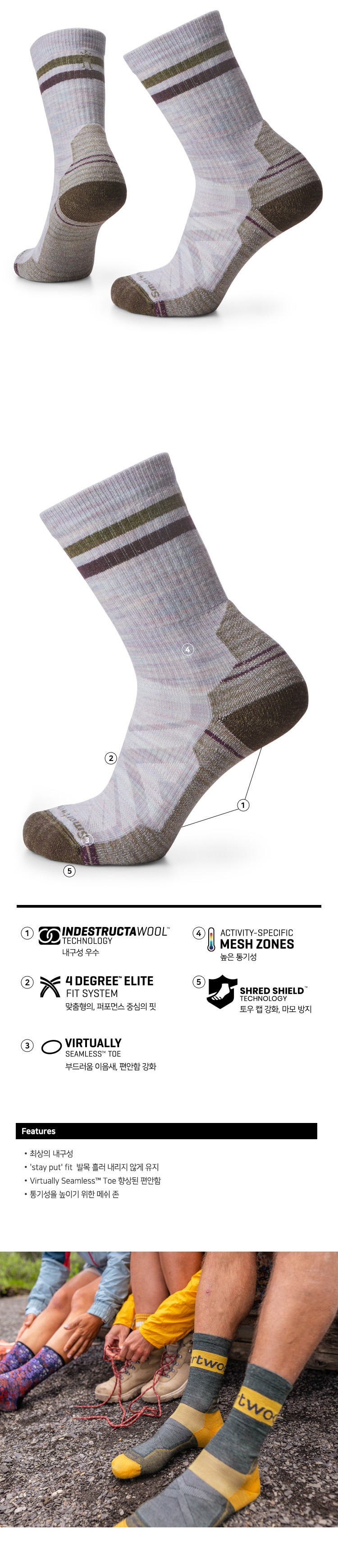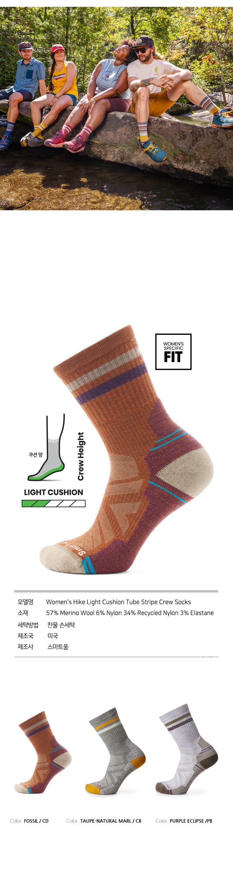 하이크 라이트 쿠션 튜브 스트라이프 크루 삭스 토프 여성용