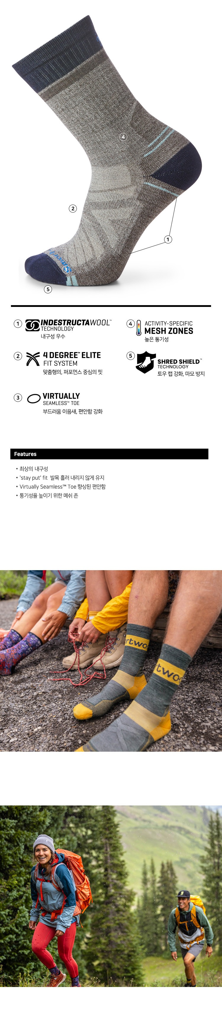 하이크 라이트 쿠션 와인딩 트레일 크루 삭스 토프