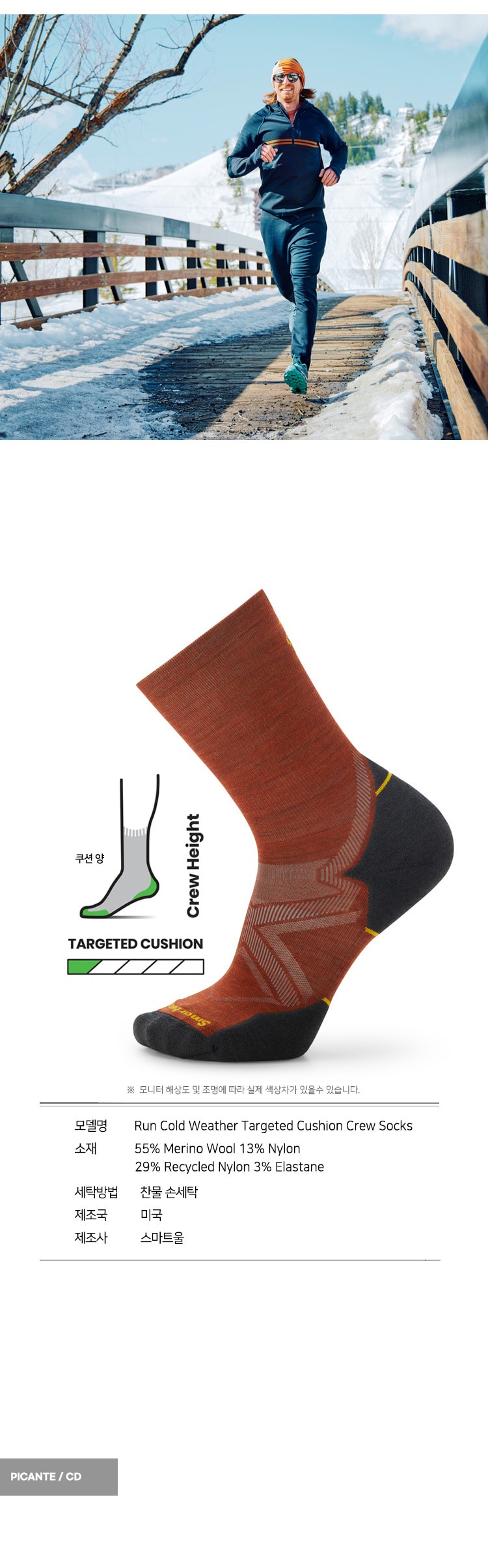 런 콜드 웨더 타겟 쿠션 크루 삭스 피칸테