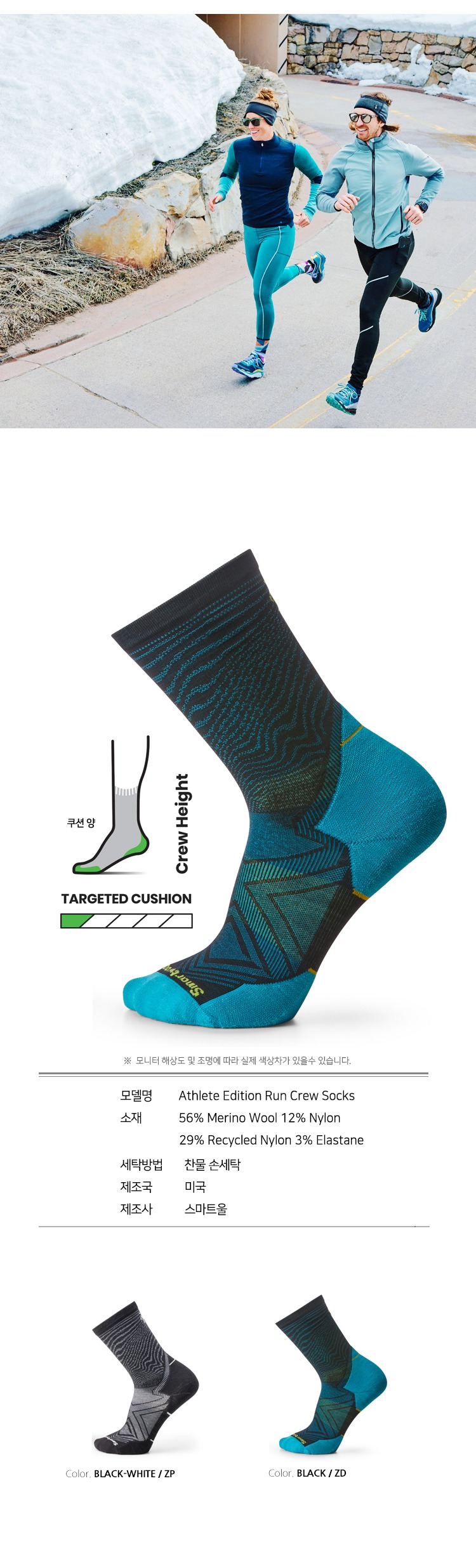 애슬리트 에디션 런 크루 삭스 블랙