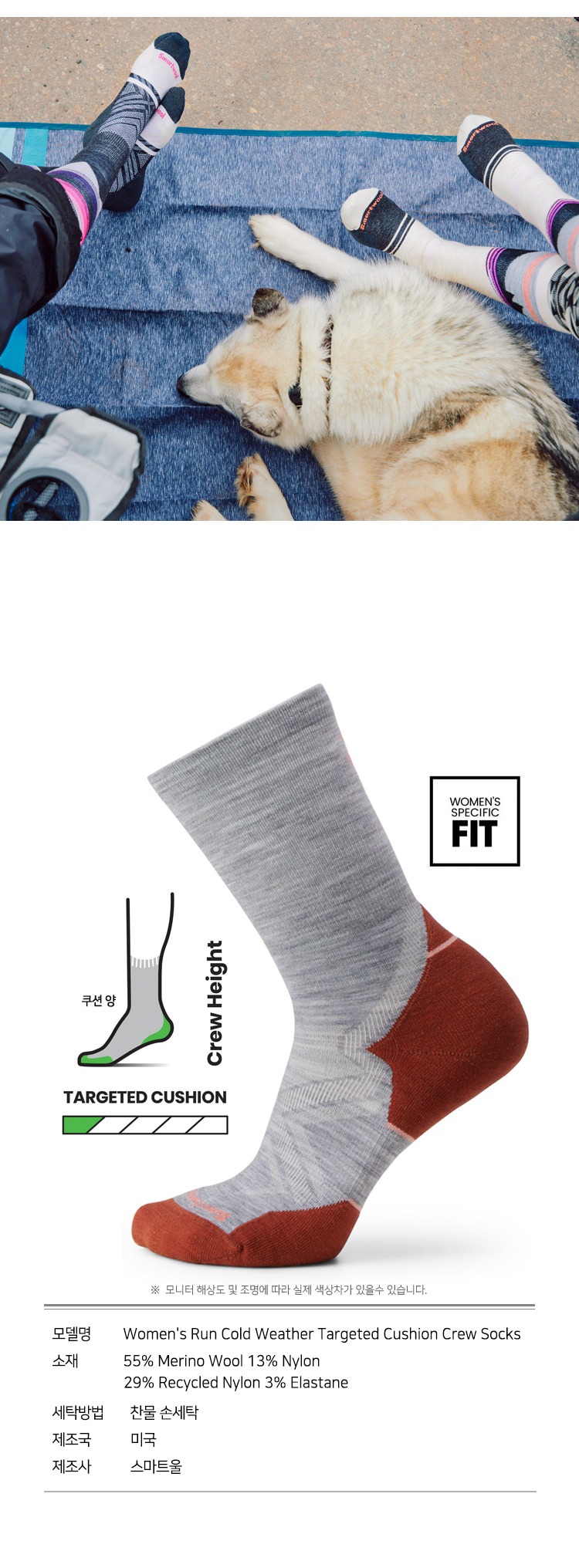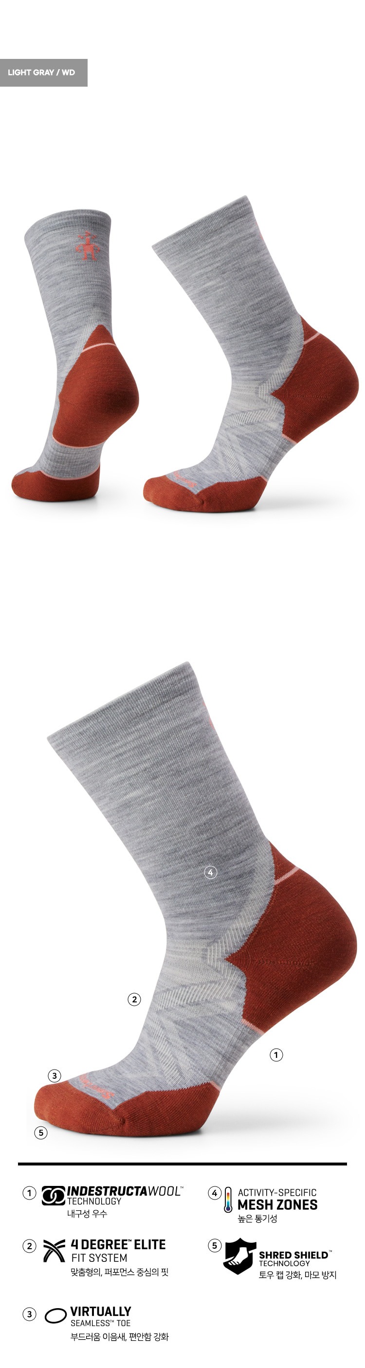 런 콜드 웨더 타겟 쿠션 크루 삭스 라이트그레이 여성용