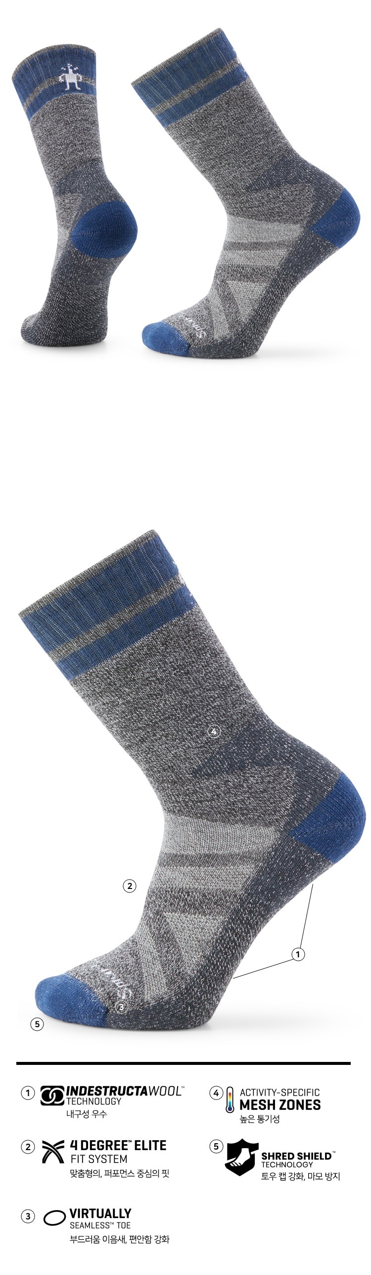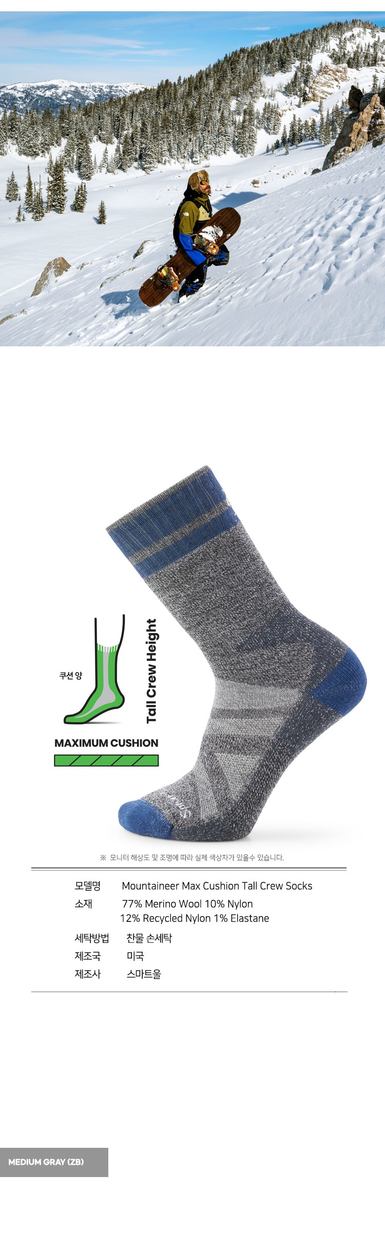 마운티니어 맥스 쿠션 톨 크루 삭스 미디움그레이