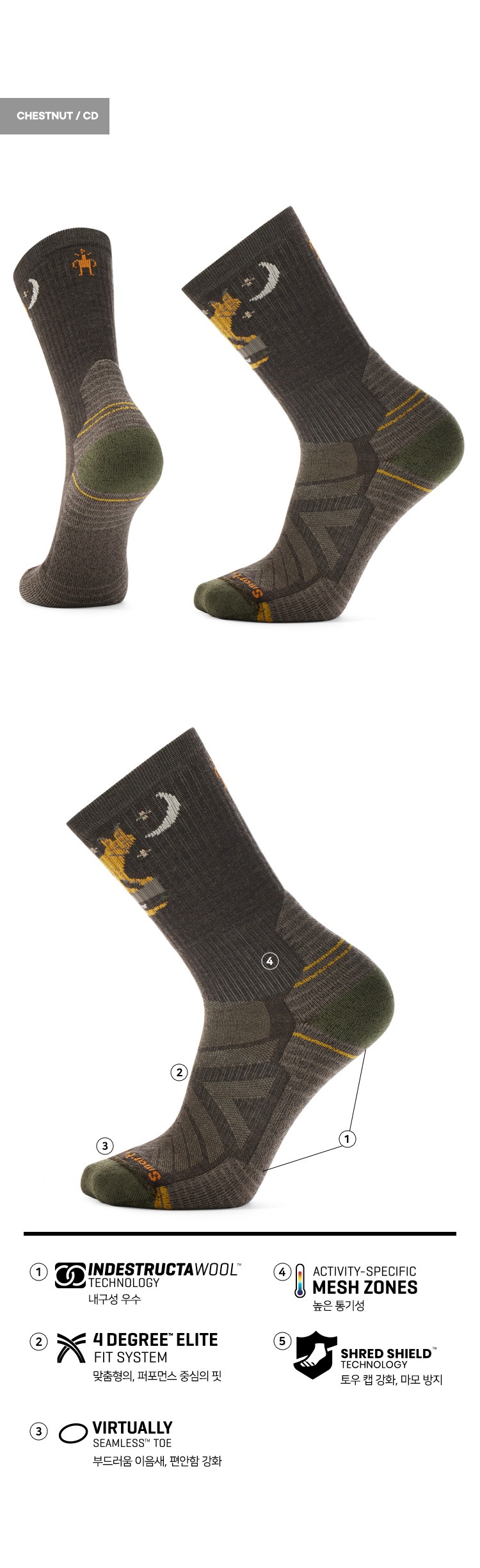 하이크 라이트 쿠션 나이트폴 포레스트 크루 삭스 체스트넛