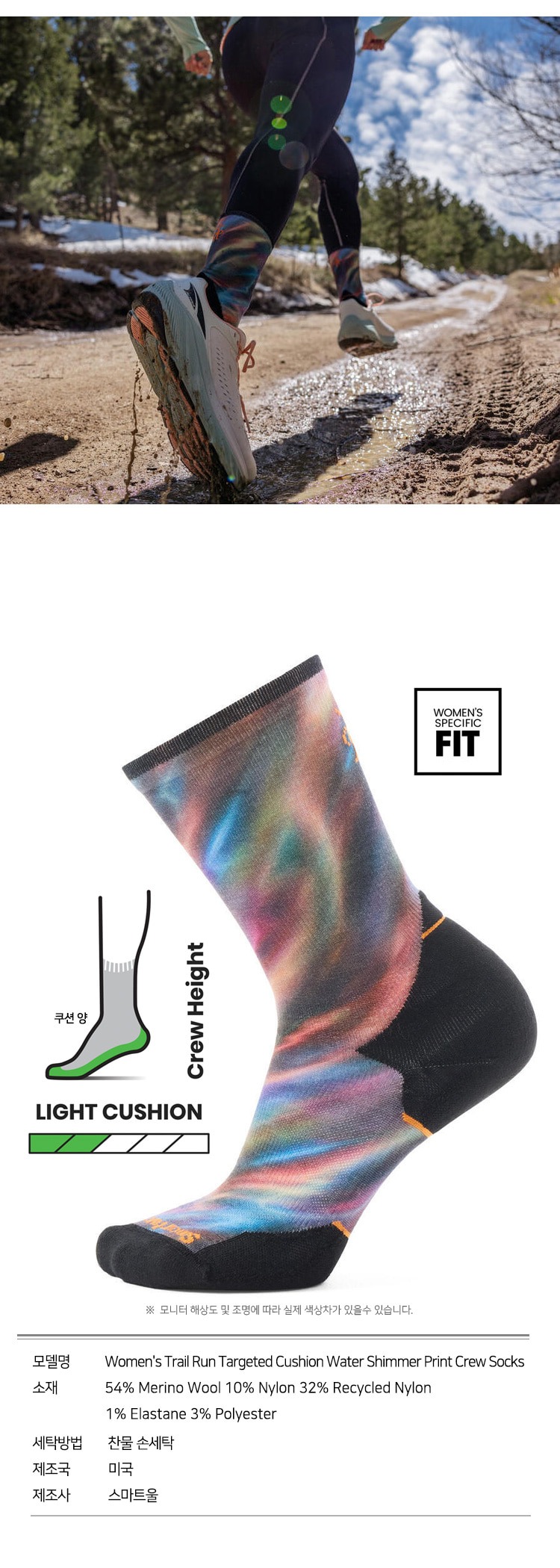 트레일 런 타겟 쿠션 워터 시머 프린트 크루 삭스 블랙 여성용
