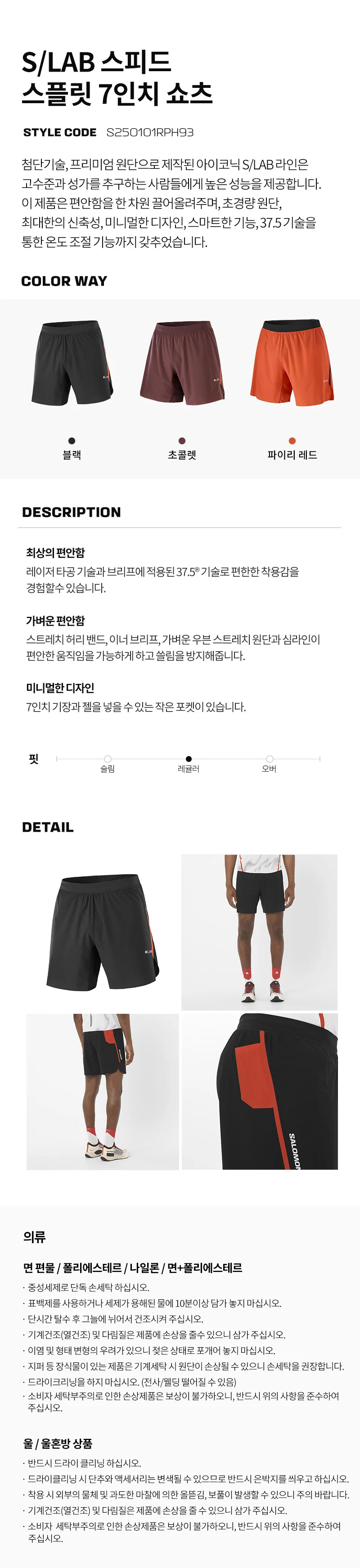 S/LAB 스피드 스플릿 7인치 팬츠 파이리 레드 남성용
