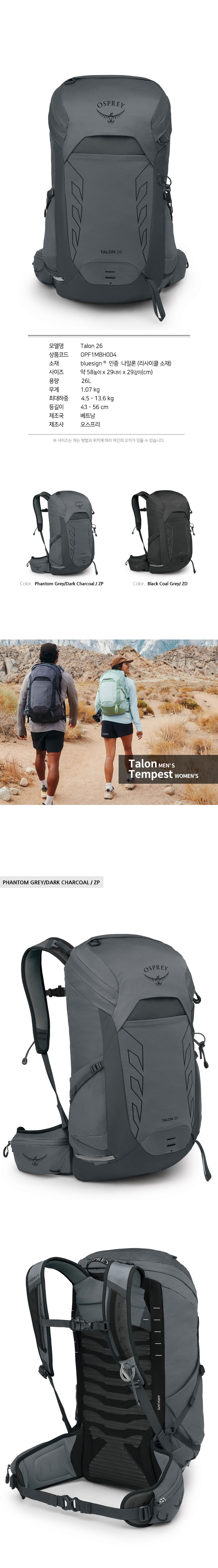 탈론 26L 블랙 그레이 남성용