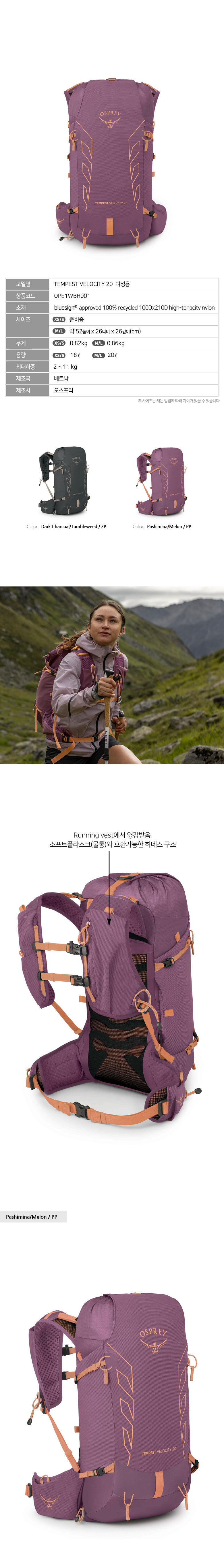 템페스트 벨로시티 20L 다크 차콜 여성용