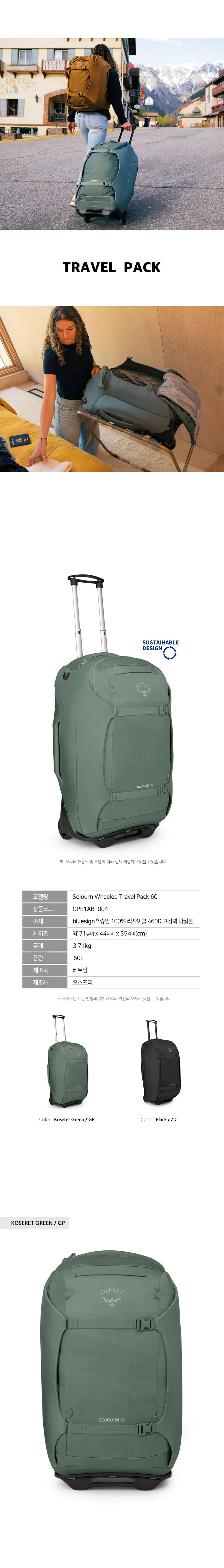 서전 휩리드 트래블 팩 60L 그린