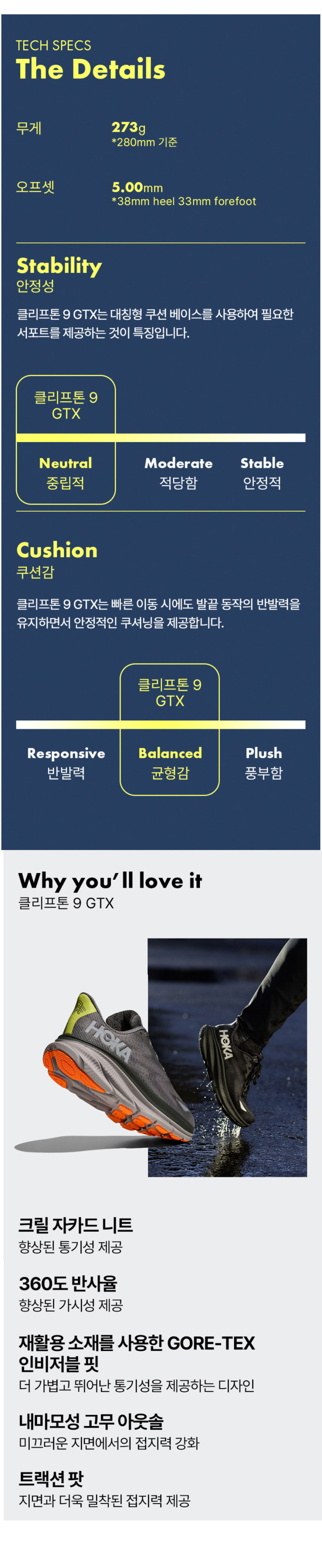 클리프톤 9 GTX 블랙 여성용 (1141490F-BBLC)
