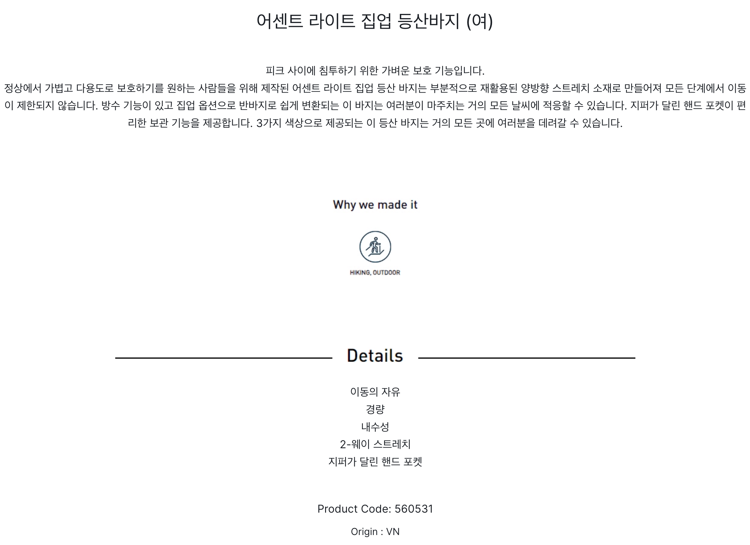 어센트 라이트 집업 팬츠 남성용 (560531_21078)