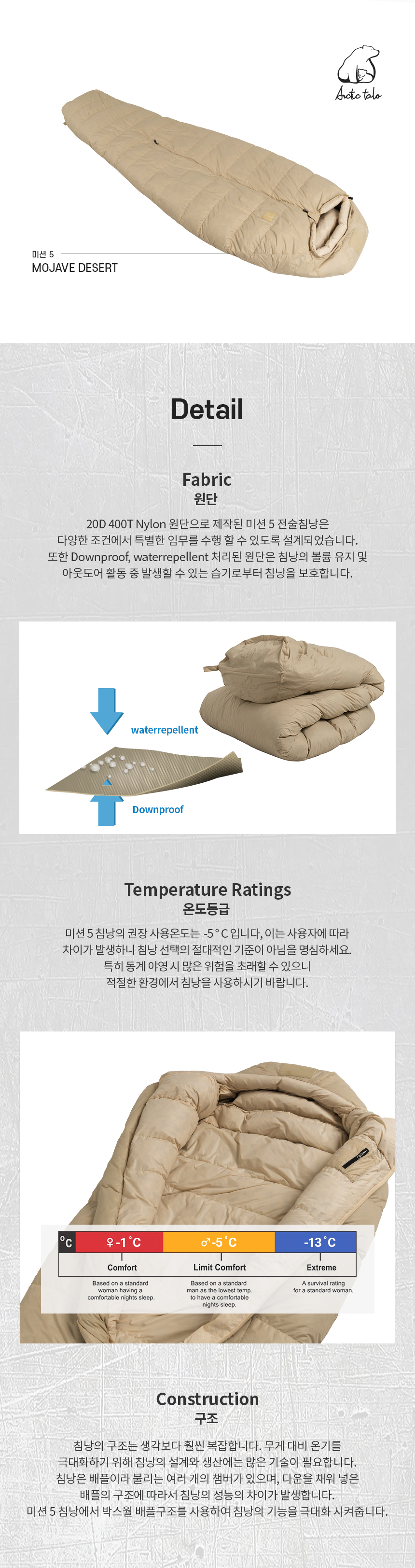미션 5 덕다운 침낭 모하비데저트