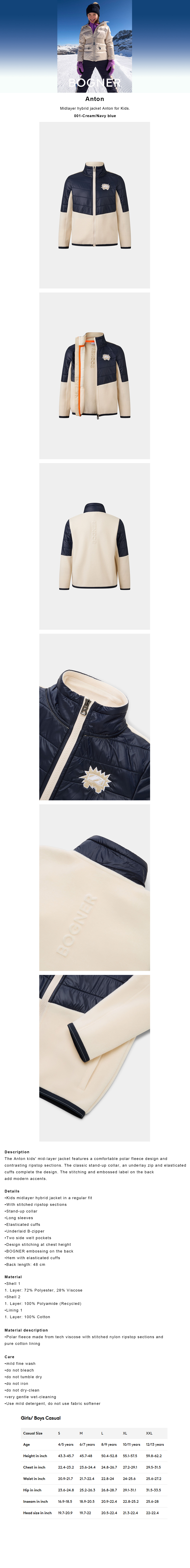 안톤 스키 자켓 키즈 크림 네이비 블루 2526
