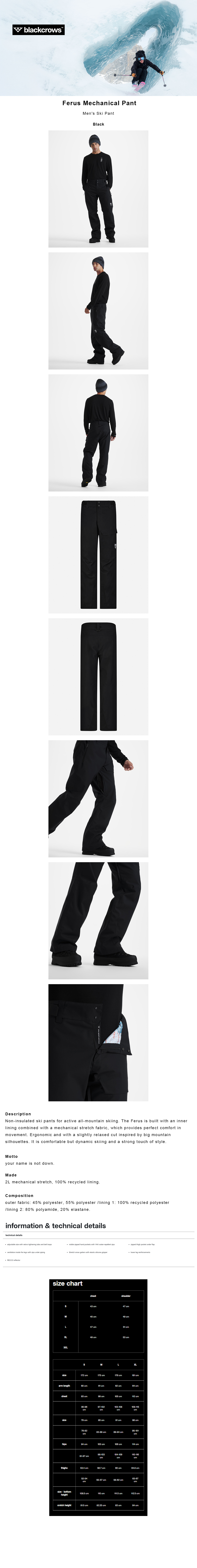 페루스 메카니컬 스키 팬츠 블랙 남성용