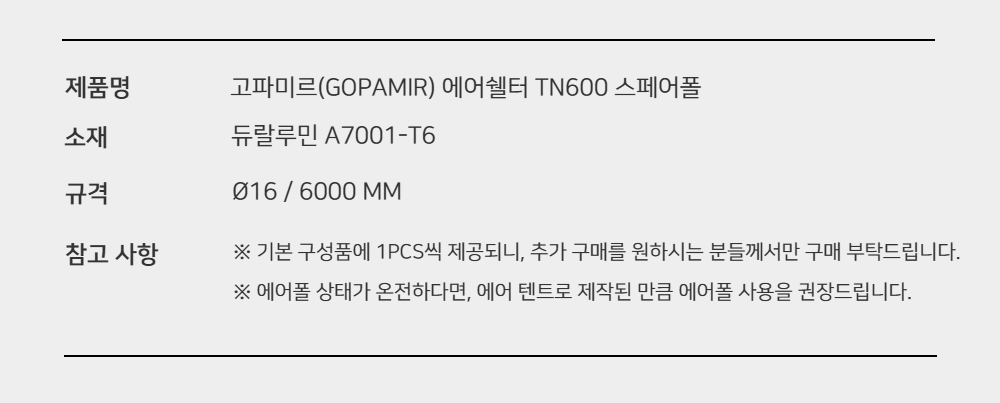 에어쉘터 TN600 스페어폴