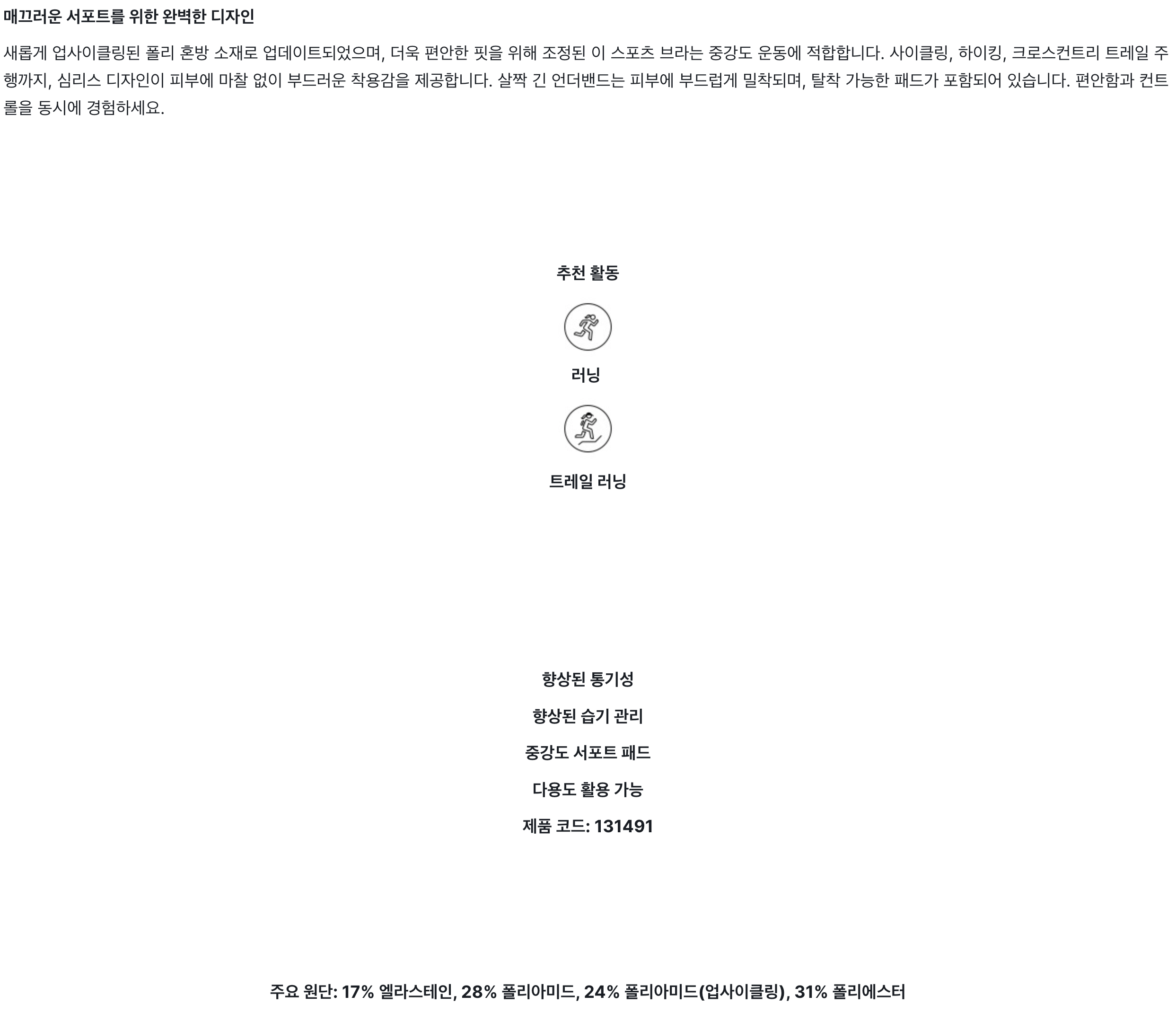 심리스 미디움 패디드 스포츠 브라 여성용 (131491_15015)