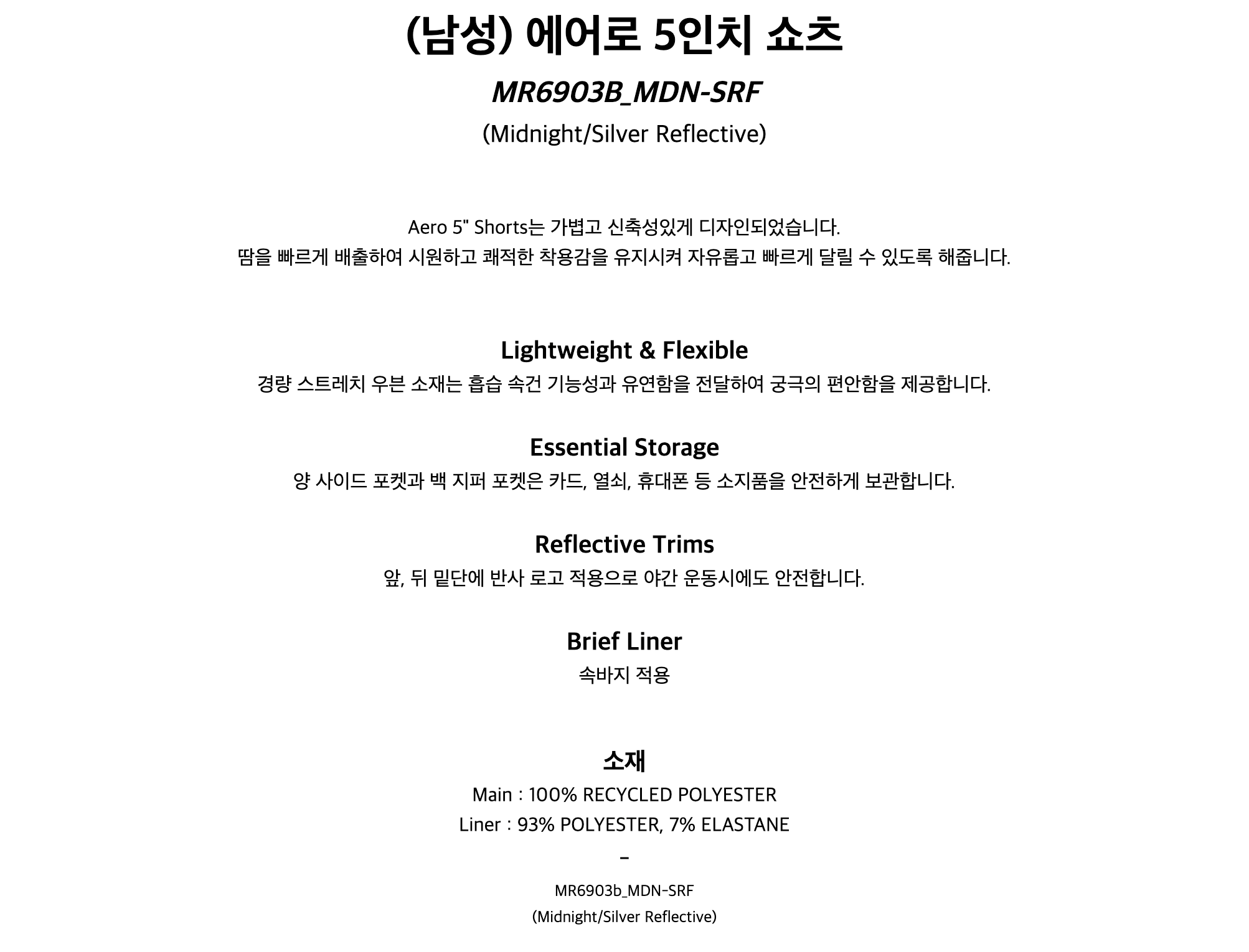 에어로 5인치 쇼츠 미드나잇 실버 남성용 (MR6903BMDN-SRF)