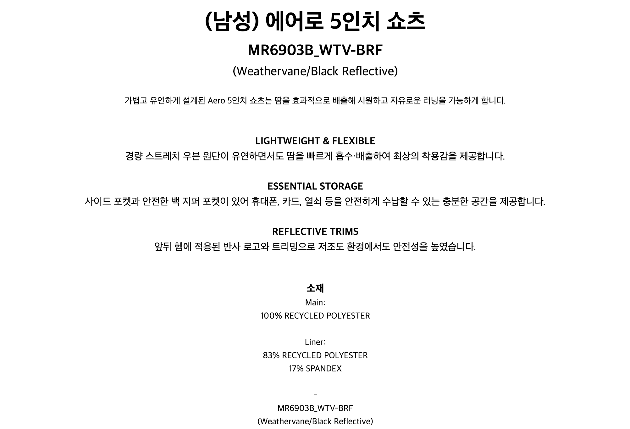 에어로 5인치 쇼츠 웨더베인 블랙 남성용 (MR6903BWTV-BRF)