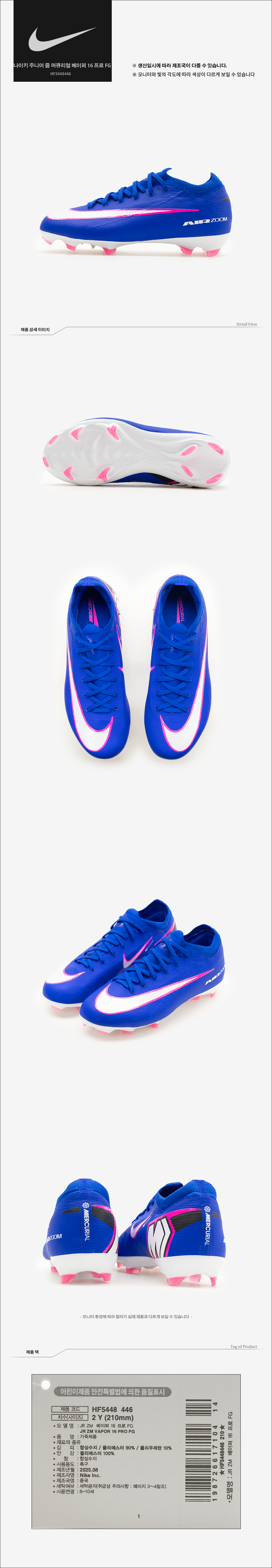 주니어 줌 머큐리얼 베이퍼 16 프로 FG (HF5448446)
