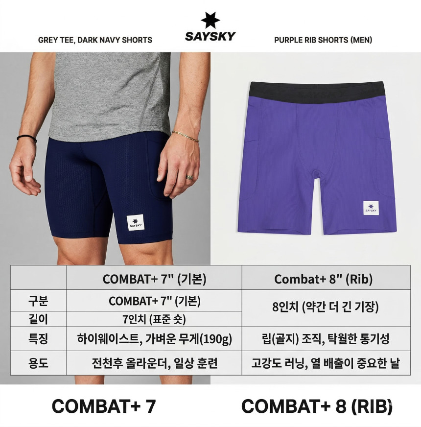 컴뱃 플러스 립 쇼츠 타이즈 8인치 퍼플 남성용