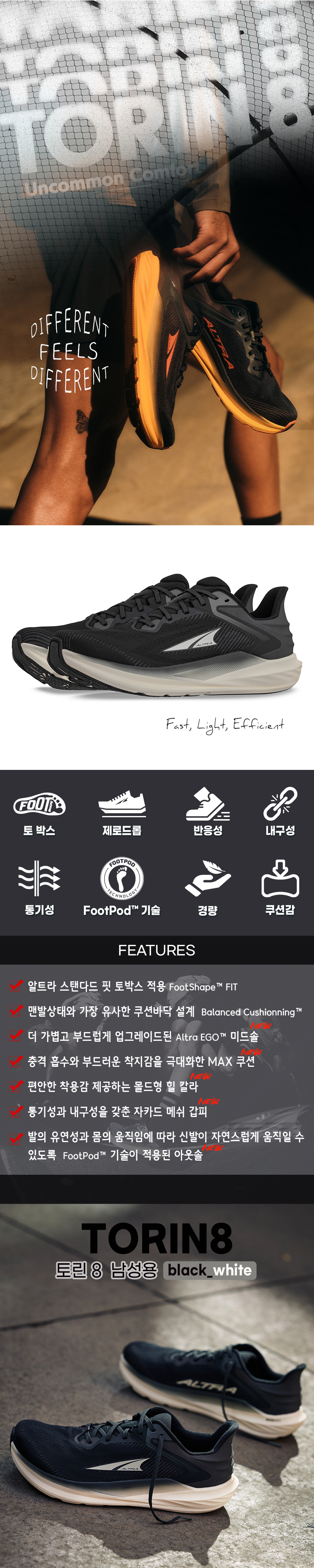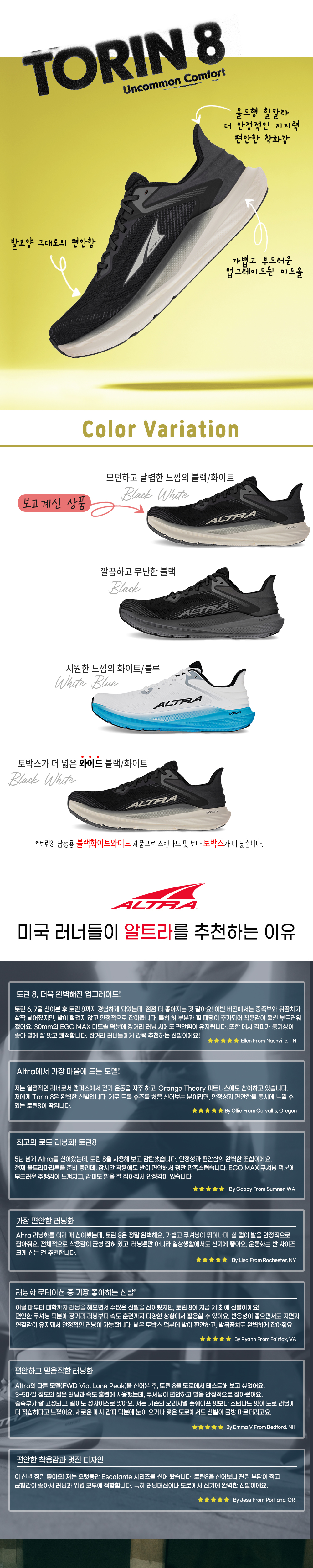 토린8 와이드 블랙 화이트 남성용