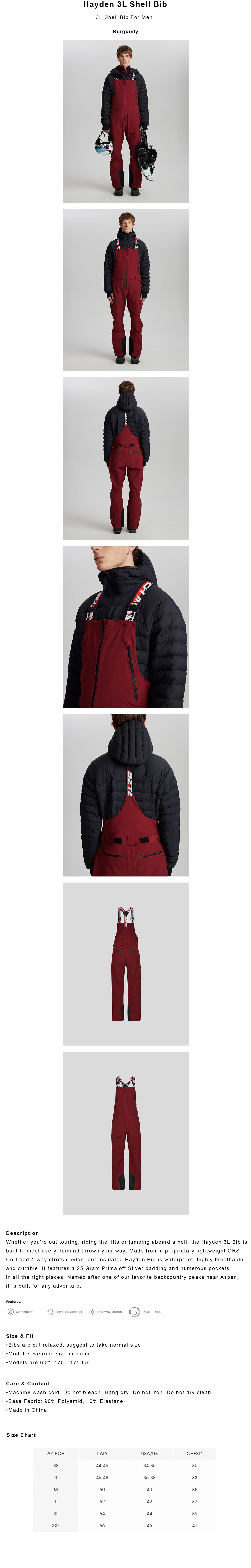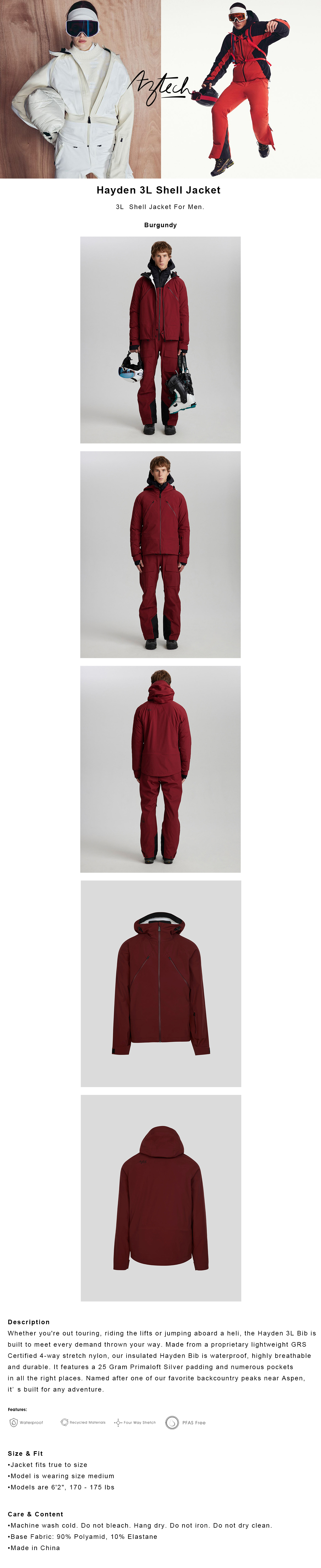 헤이든 3L 쉘 자켓 빕 세트 버건디 2526