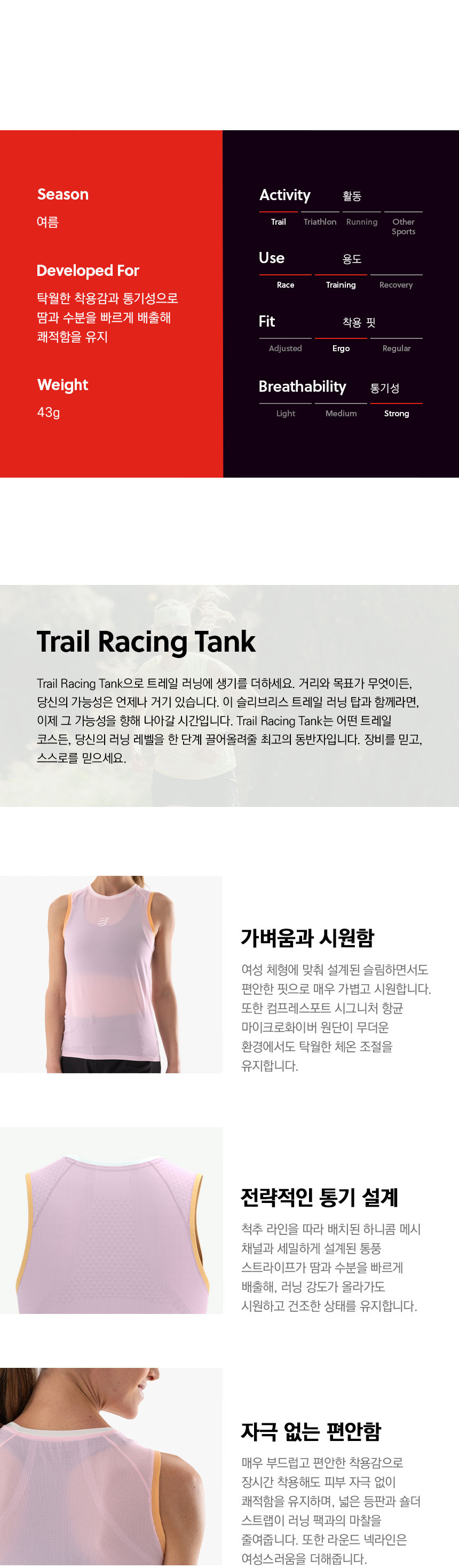 트레일 레이싱 탱크 여성용 나일