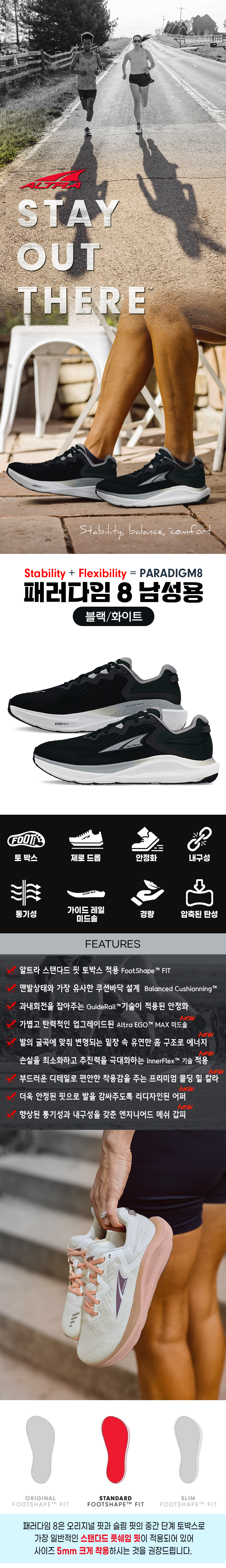 패러다임8 블랙 화이트 남성용
